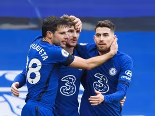 Cesar Azpilicueta, Timo Werner y Jorginho se abrazan tras un gol del Chelsea - Ashley Western/COLORSPORT/DP/AFP7/Europa Press