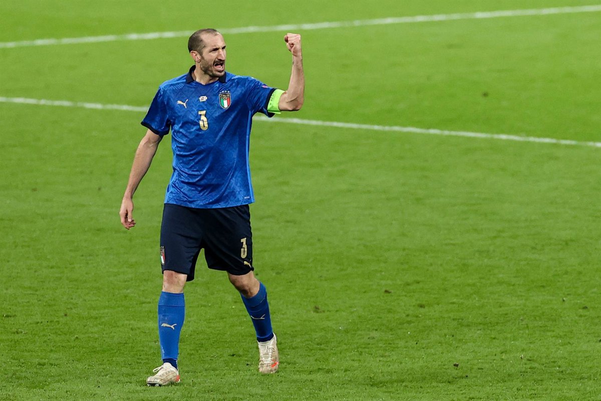 Archivo - Giorgio Chiellini celebra el gol de Italia en la final de la UEFA EURO 2020 contra Inglaterra en Wambley. Photo: Christian Charisius/dpa - Christian Charisius/dpa - Archivo