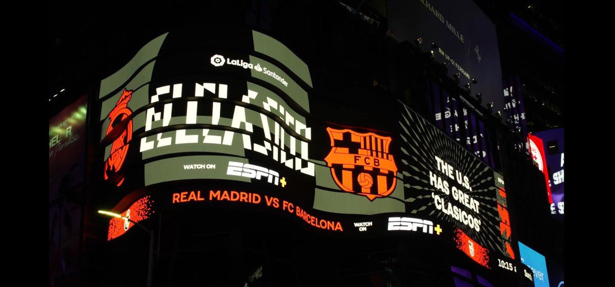 El primer Clásico de la temporada de LaLiga dejará su huella en algunos de los escenarios más emblemáticos del mundo. Por ejemplo, una campaña especial ha tomado Times Square en Nueva York como parte de la cobertura sin precedentes de la cadena local ESPN, así como en el espacio de ocio LA Live en el centro de Los Ángeles.