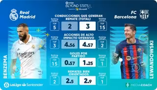 El portal Beyond Stats obtiene métricas gracias a la plataforma Mediacoach, apoyada por la tecnología de Machine Learning e inteligencia artificial de Microsoft Azure. Además de ello, el equipo de LaLiga de analistas de fútbol de Mediacoach ha realizado un análisis especial de las métricas y jugadores destacables de ambos clubes en este momento de la competición que configura un marco de cómo llegan los equipos al Clásico.