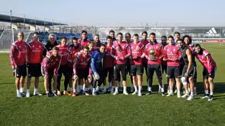 El delantero portugués del Real Madrid, Cristiano Ronaldo, compartió con sus compañeros su tercer 'Balón de Oro' durante el entrenamiento matinal de este martes del equipo blanco.