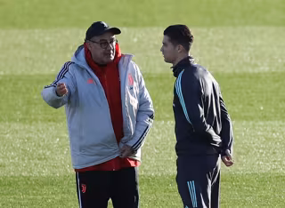 Cristiano Ronaldo charla con Maurizio Sarri durante un entrenamiento de la Juventus - Jonathan Moscrop/CSM via ZUMA Wi / DPA - Archivo