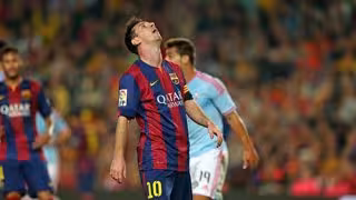 Lo mismo le ocurrió a Suárez. Mientras, Messi, lejos de la portería, no encontraba las conexiones de otros días. En medio de la ofensiva local, llegó el gol visitante. Un saque de portería peinado en el centro del campo, el balón llegaba al área y entre Nolito y Larrivey volvían locos a Alves y Busquets para batir a Bravo por primera vez en Liga ante su público.