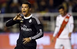 El Real Madrid se ha impuesto este miércoles a domicilio al Rayo Vallecano (0-2) gracias a los goles de Cristiano Ronaldo y de James Rodríguez, en un partido correspondiente a la trigésima jornada de la Liga BBVA, consumando un triunfo que permite al equipo madridista seguir como segundo y a la estela del FC Barcelona en la cabeza de la clasificación.