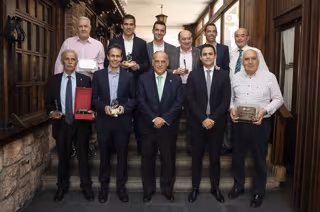 Javier Tebas entregó premios a Carlos Naval, delegado en el FC Barcelona, que cumple 32 temporadas en el club culé, y a José María Calzón, delegado del RCD Espanyol de Barcelona desde 1975, con más de cuatro décadas a su espalda, toda una institución en el club catalán y el más veterano de toda LaLiga Santander.