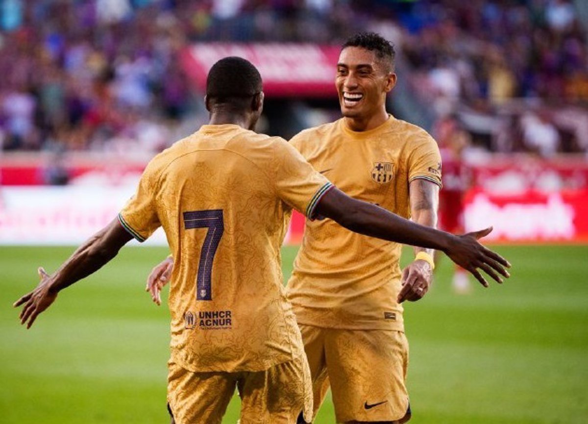 Los de Xavi, con su camiseta dorada en verdad este sábado --madrugada en España--, buscaron al delantero polaco, con Rapinha y Dembélé como extremos de inicio, y el ex del Bayern también se las supo guisar él solito. El brasileño y el francés alargaron sus buenas sensaciones de pretemporada, también los números.
