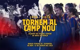 Imagen promocional del partido entre Bara Femení y RCD Espanyol Femení que se jugará en el Camp Nou el 6 de enero de 2021, en conmemoración del 50 aniversario del primer partido del equipo blaugrana en el estadio. - FC BARCELONA