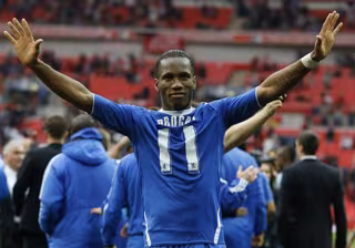 Drogba llegó al Chelsea en el año 2004 y jugó en ocho cursos un total de 342 partidos marcando 157 goles. Además, es el máximo goleador del conjunto inglés en las competiciones europeas con 34 dianas.