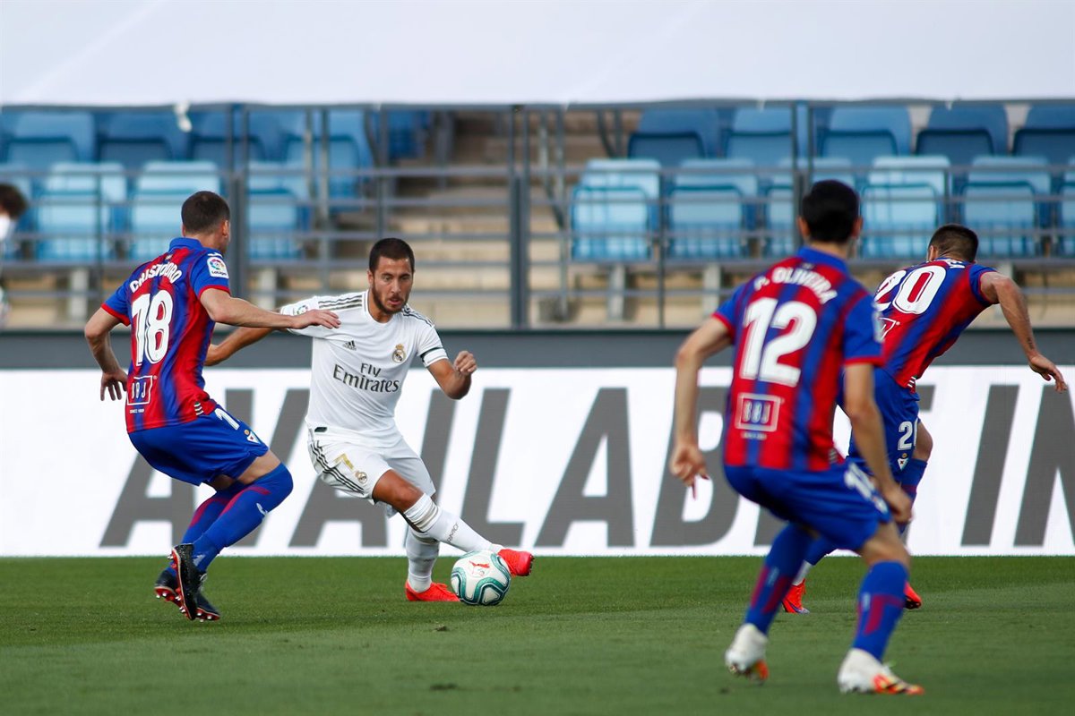Sebastián Cristóforo intenta robar el balón a Eden Hazard en el Real Madrid-Eibar de LaLiga Santander 2019-2020 - Oscar J. Barroso / AFP7 / Europa Press - Archivo