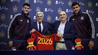 En la presentación han estado presentes el presidente de la Comisión Gestora de la RFEF, Pedro Rocha; el CEO fundador de 'elPulpo', José Antonio Chacón; y los jugadores de la selección española Álvaro Morata (Atlético de Madrid), Rodri Hernández (Manchester City), Joselu Mato (Real Madrid) y Lamine Yamal (FC Barcelona).