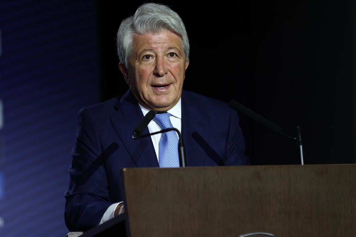 El presidente del Atlético de Madrid, Enrique Cerezo, en la presentación de Nahuel Molina como jugador rojiblanco. - OSCAR J. BARROSO / AFP7 /EUROPA PRESS