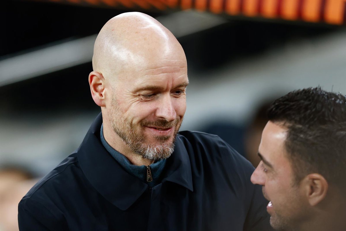 Erik Ten Hag, head coach of Manchester United, saludates to Xavi Hernandez, head coach of FC Barcelona, during the UEFA Europa League, knockout round play-off, football match played between FC Barcelona and Manchester United at Spotify Camp Nou - Oscar J. Barroso / AFP7 / Europa Press