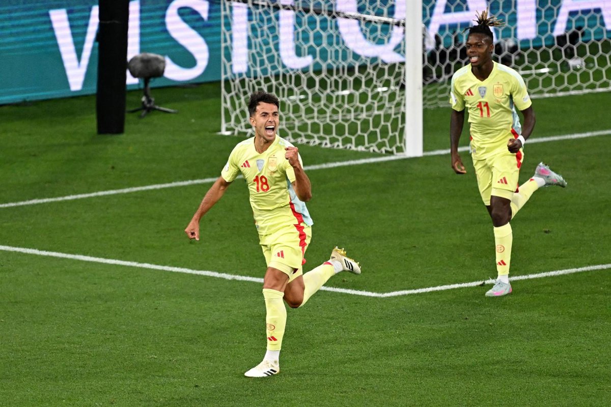 ESPAÑA: Simón; Porro, Huijsen, Le Normand, Cucurella; Zubimendi, Merino; Yamal, Pedri, Williams; y Oyarzabal.
