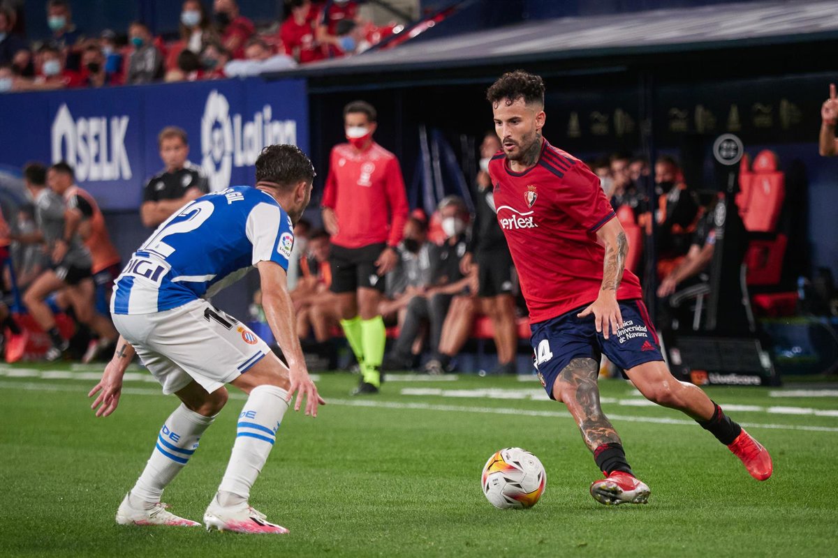 Archivo - El jugador de Osasuna Rubén García intenta regatear a Óscar Gil, del Espanyol, en un encuentro en El Sadar de LaLiga Santander 2021-2022. - Eduardo Sanz / AFP7 / Europa Press - Archivo
