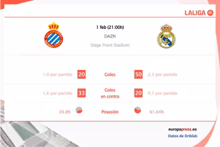 Estadísticas previa Espanyol vs Real Madrid. - EPDATA