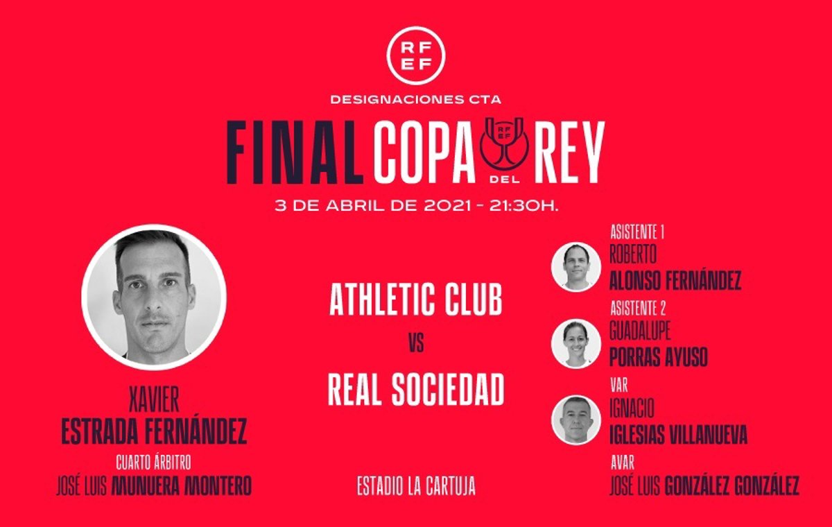 Estrada Fernández, con 12 temporadas en Primera, ha sido el árbitro elegido por la Real Federación Española de Fútbol (RFEF) para dirigir esta histórica final copera, un derbi vasco entre bilbaínos y donostiarras.