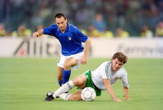 Ello le valió la convocatoria para el Mundial de Italia '90, al que llegaba no obstante como suplente y posible revulsuvo. "Y en Italia '90 fue el héroe que nadie esperaba, saliendo desde el banquillo y tomando el relevo en la segunda parte del partido de debut ante Austria, cuando a diez minutos del final en el Estadio Olímpico de Roma cabeceó un centro de Gianluca", rememoró la federación.