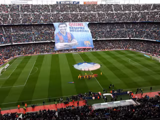 'Gracias por tantas noches de brujería, DEP Quini', le dedicó parte de la afición al gran delantero asturiano, que militó en el FC Barcelona entre 1980 y 1984 y que se convirtió desde entonces en uno de los ídolos del barcelonismo.