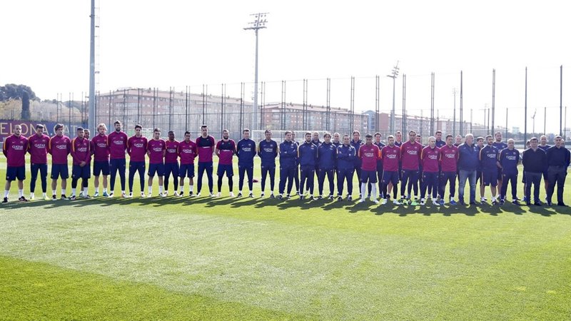 En el césped del campo Tito Vilanova de la Ciutat Esportiva Joan Gamper, y en la segunda sesión de la semana pero primera con la mayor parte de la plantilla disponible, a excepción de algunos internacionales como Leo Messi y Javier Mascherano, la plantilla junto al cuerpo técnico homenajeó a Cruyff con un minutos de silencio en su recuerdo.