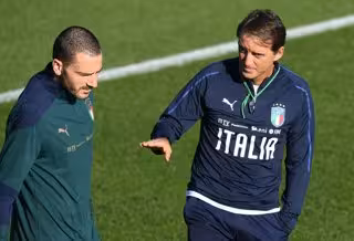 El seleccionador italiano Roberto Mancini y el internacional Leonardo Bonucci en Coverciano - Jennifer Lorenzini/Lapresse via / DPA - Archivo
