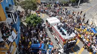 Antes, su féretro fue paseado sobre el techo de un camión de bomberos por las calles de Santos, donde numerosos aficionados vitorearon a la comitiva y ondearon banderas del Santos. La comitiva pasó por delante de la casa de la madre de Pelé, de 100 años, y su hermana, Maria Lúcia, saludó a sus compatriotas desde el balcón.