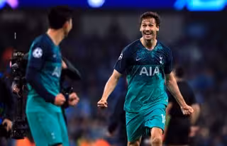 17 April 2019, England, Manchester: Tottenham Hotspur's Fernando Llorente celebrates his team's victiry after the UEFA Champions League quarter-final second leg soccer match between Manchester City and Tottenham Hotspur at the Etihad Stadium. Photo: Mik - Mike Egerton/PA Wire/dpa - Archivo