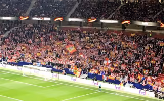 El fondo sur del Wanda Metropolitano clamó este jueves contra el nuevo escudo del Atlético de Madrid en el minuto 12 del partido de ida de los cuartos de final de la Liga Europa ante el Sporting de Lisboa, como ya ocurrió en el pasado partido liguero ante el Deportivo de la Coruña.
