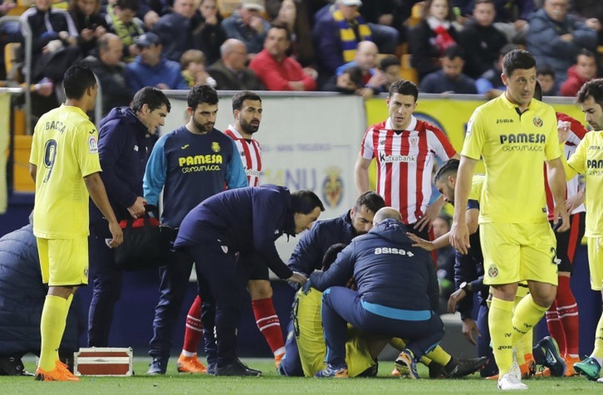 El futbolista castellonense se desmayó sobre el césped en el minuto 6 del choque con serios gestos de dolor. Las asistencias médicas hicieron acto de presencia en el terreno de juego para explorar al atacante 'groguet'.