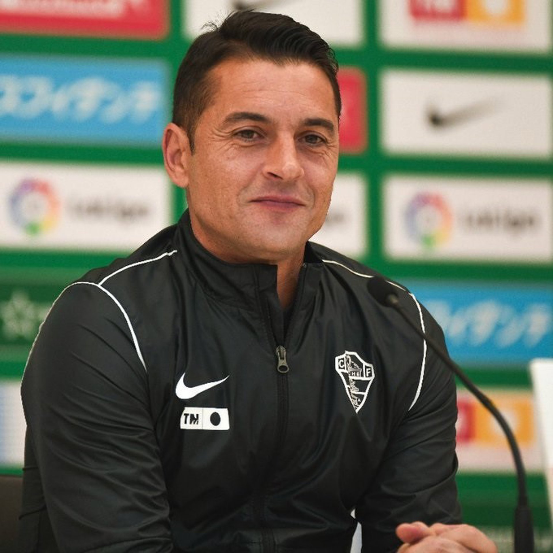 "Sigo teniendo la misma ilusión y ambición que cuando renové", dijo el entrenador del Elche sobre su futuro la víspera de jugar en el Camp Nou