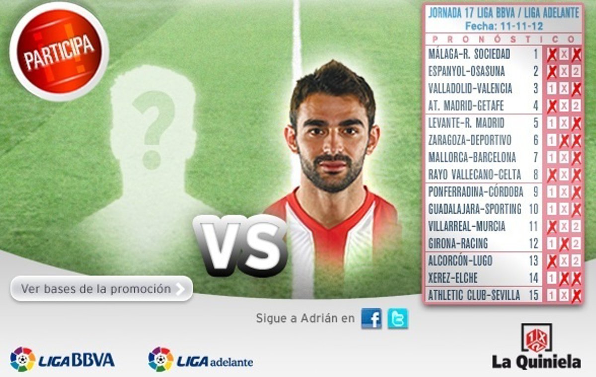 Adrián será el primero en participar en un reto que cada semana contará con un jugador o entrenador de la Liga. El método es muy sencillo: el deportista da sus pronósticos y desafía al resto de apostantes a mejorar su apuesta.