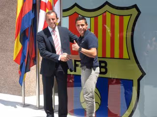 Solventado el trámite médico, el chileno tenía cita a las 12.30 horas en las oficinas del Camp Nou, donde ha firmado el contrato que le ligará al conjunto blaugrana las próximas cinco campañas. A la salida de las oficinas ha posado con el presidente, Sandro Rosell, ante los medios de comunicación y cerca de 300 seguidores culés, que le esperaban con banderas de su país natal, Chile.