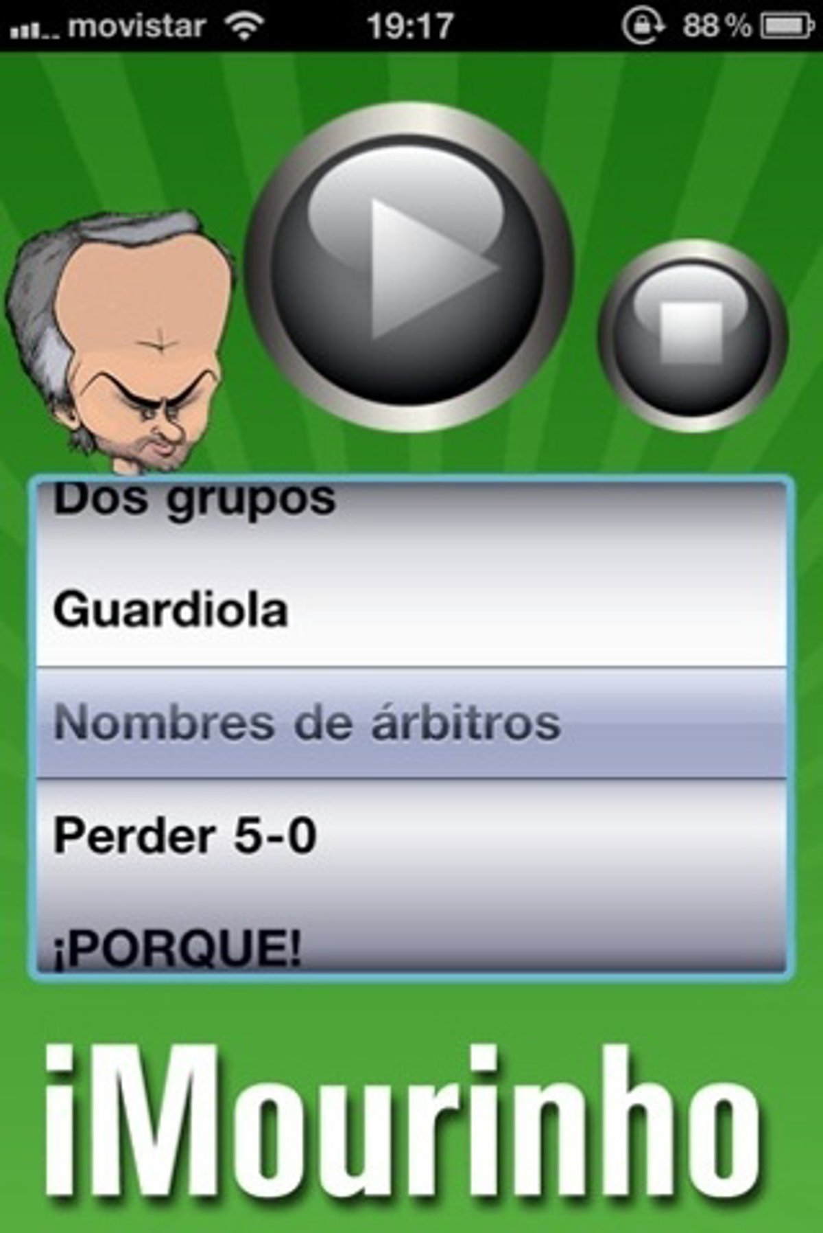 La aplicación incluye clásicos como "puro teatro", "soy odiado en Barcelona", "llevo una semana sin dormir", "prostitución emocional", "yo no soy provocador" o "soy José Mourinho".