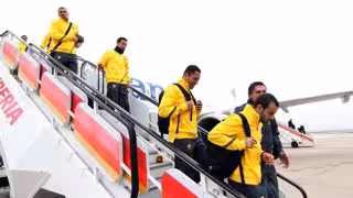 Los catalanes salieron de Barcelona poco después de las once de la mañana en dirección a Vitoria, tras descartarse la opción de volar directamente a Pamplona. El avión no ha tenido ningún problema en el aterrizaje, pese a la intensa niebla que también cubría la capital vasca.