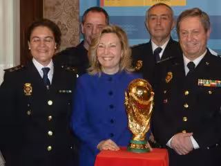 Por su parte, el Seleccionador nacional Vicente del Bosque ha anunciado que la Copa del Mundo irá a cuantos rincones de España la reclamen y, dado que este jueves se expone en la Delegación del Gobierno, ha recordado la "magnífica labor" de los cuerpos de Seguridad del Estado.