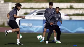 El entrenamiento, dirigido por Manuel Pellegrini, consistió en carrera continua, estiramientos, rondos, ejercicios físicos, transiciones defensa-ataque y un 'partidillo' final.