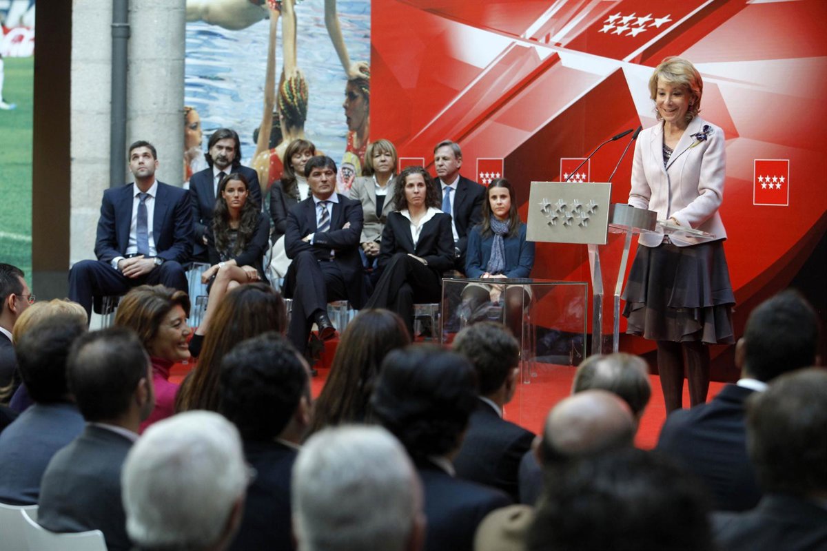 La presidenta de la Comunidad de Madrid, Esperanza Aguirre, acompañada por el alcalde de Alcorcón, David Pérez, asistirá esta miércoles, a las 21.00 horas, al palco del Estadio Municipal de Santo Domingo, donde la Agrupación Deportiva Alcorcón disputará el primero de los dos partidos contra el Valladolid que marcarán su historia y decidirán el tercer equipo que asciende este año a la Liga BBVA.