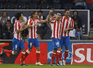 El asturiano aprovechaba un rechace del meta luso tras cabezazo de Reyes para hacer el tercero de los suyos y abrir aún más la brecha con un Vitoria que deambulaba por el verde. Este tanto no colmó la voracidad de los rojiblancos, sin compasión por los portugueses, que llevaban todo el segundo acto agitando la bandera blanca. Elías y Adrián volvían a rondar el gol merced a dos mano a mano con Nilson. La exhibición visitante parecía no tener fin.