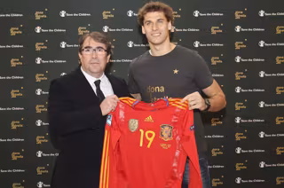 Fernando Llorente fue el único internacional español que saltó al Estadio Darius y Girenas de Kaunas (Lituania) el pasado 29 de marzo sin la estrella dorada de campeón del mundo en el pecho, ya que se la donó a Aarti, una niña que vive en un 'slum' de Nueva Delhi y que gracias a él ha podido pasar el umbral de los 5 años.
