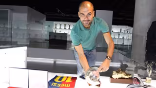 El entrenador del FC Barcelona Pep Guardiola ha entregado este miércoles al Museu del club blaugrana el galardón que le acredita como 'Mejor Entrenador de 2011' que recibió el pasado 9 de enero en la gala de la FIFA, donde Leo Messi recibió su tercer 'Balón de Oro'.