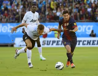 El duelo, reedición de las finales de Liga de Campeones en 2009 y 2011, fue claramente un partido de pretemporada en el que faltó el ritmo. El conjunto blaugrana contó ya de inicio con Iniesta, campeón de Europa con la selección española, y que jugó la primera mitad, suficiente para ser nombrado jugador del partido junto a Scholes.
