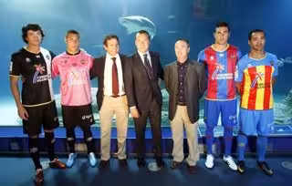 El Levante ha presentado los diseños de sus nuevas equipaciones para la temporada 11-12, en el Auditorio Mar Rojo del Oceanogràfic, entre las que destaca la tercera equipación que lucirá los colores de la Senyera.