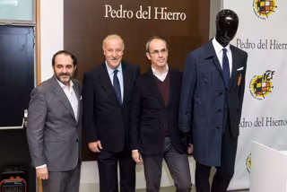 El seleccionador español, Vicente del Bosque, y el Director General de Cortefiel y Pedro del Hierro, Fernando Sáenz, han presentado este martes el traje oficial que vestirá la selección española de fútbol durante los próximos dos años, tras un acuerdo de patrocinio que vuelve a convertir a la firma Pedro del Hierro en Colaborador Oficial de la Real Federación Española de Fútbol (RFEF).