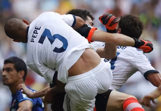 El defensa blanco, tras un golpe fortuito con su compañero Iker Casillas, pasó la noche en observación en el hospital debido al golpe que sufrió en la cabeza. El portugués se sometió esta mañana a una serie de pruebas médicas que confirmaban que se encontraba bien y "con buen nivel de conciencia".