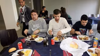 La gran novedad en este almuerzo de grupo ha sido que por primera vez esta cita se ha llevado a cabo en el comedor de la nueva 'Masia. Centro de Formación Oriol Tort', con lo que algunos de los miembros de la primera plantilla han conocido la nueva residencia de las promesas.