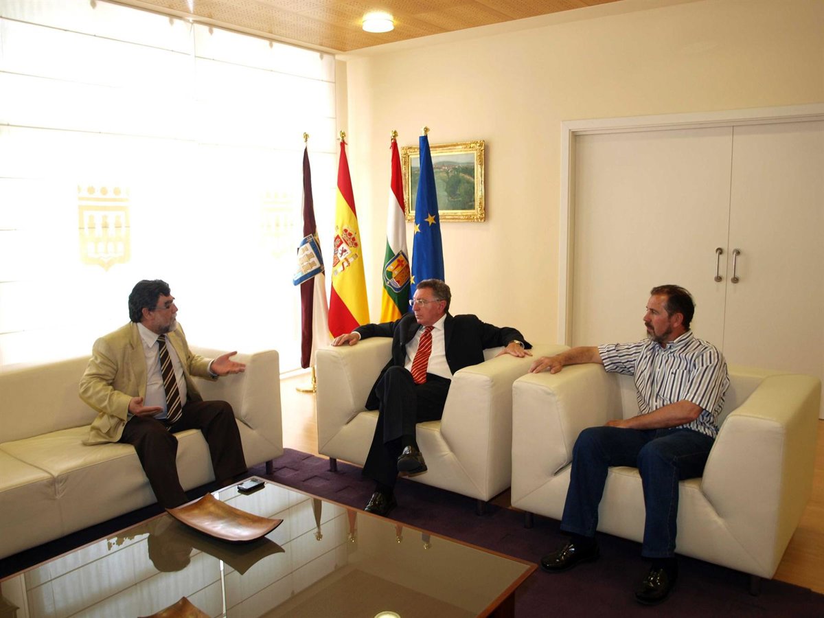 El alcalde de Logroño, Tomás Santos, ha recibido durante la mañana de este miércoles al presidente de la Federación Riojana de Fútbol, Jacinto Alonso, en el Ayuntamiento de la ciudad para preparar el encuentro que la selección española disputará el próximo 6 de septiembre ante Liechtenstein.