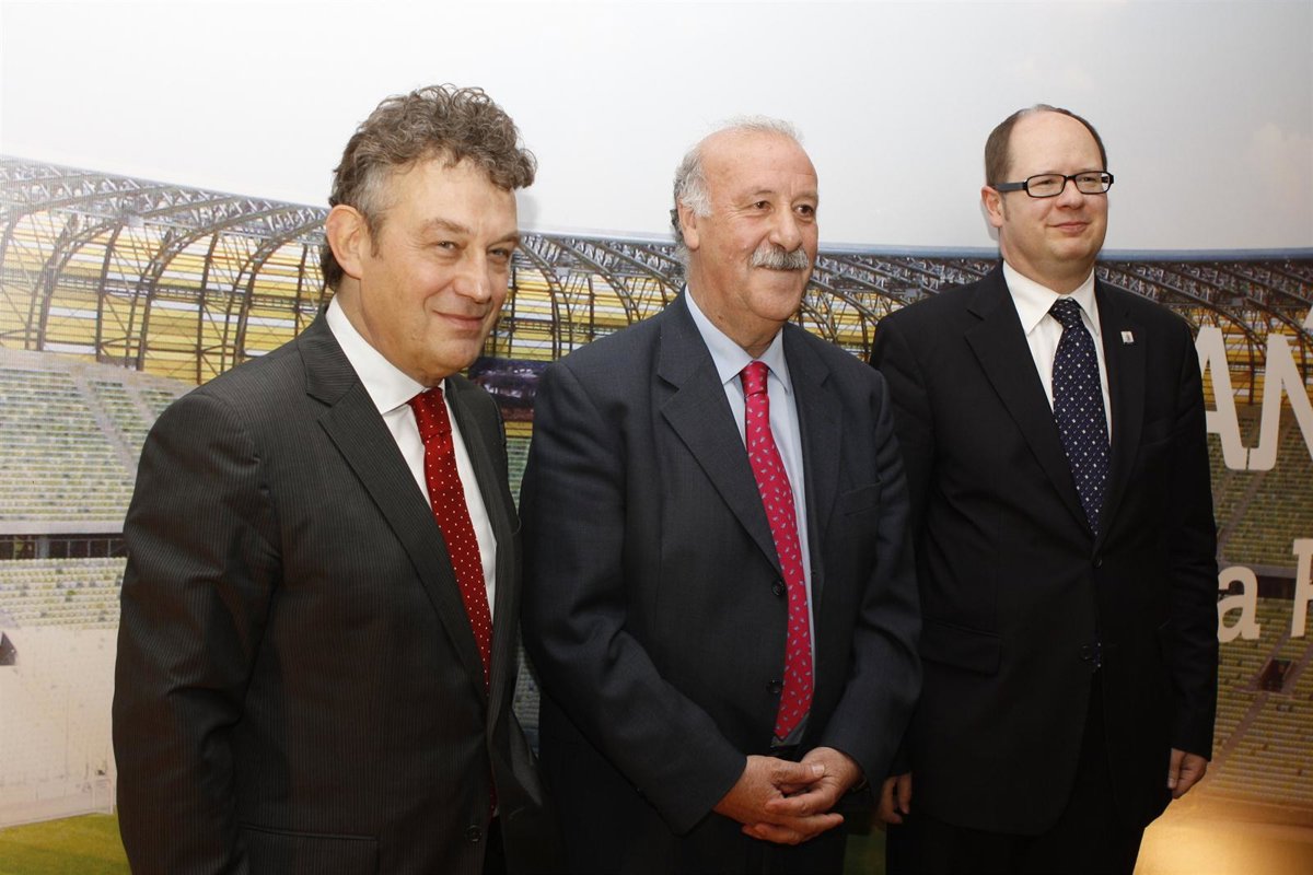 También participaron en la mesa coloquio el embajador de Polonia en España, Ryszard Schnepf, y el alcalde de Gdansk, Pawel Adamowicz, y estuvo presente el presidente de la Real Federación Española de Fútbol (RFEF), Ángel María Villar. En la ciudad de Gdansk España jugará sus tres primeros encuentros del campeonato, por lo que ha decidido alojarse en una pequeña localidad, a unos 70 kilómetros de Gdansk.