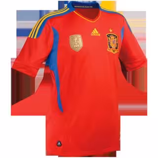 En su diseño, destacan unos bloques de color azul eléctrico en el costado y en los hombros, a juego con el pantalón y se incorpora en el cuello, en forma de pico, una línea amarilla recorriendo su contorno simulando la bandera de España, lo que le aporta una mayor solemnidad. Además en la parte interior del cuello aparece la leyenda 'Campeones del Mundo 2010'