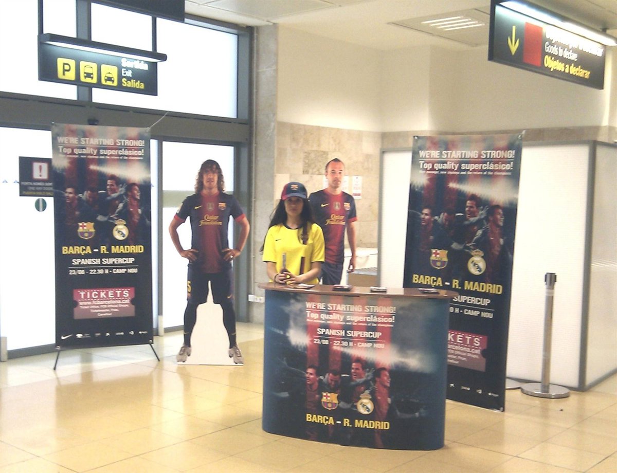 El Fútbol Club Barcelona (FCB) publicita desde este martes hasta este jueves en el Aeropuerto Girona-Costa Brava el partido de la Supercopa entre el Barça y el Real Madrid, que se disputará este jueves en el Camp Nou.