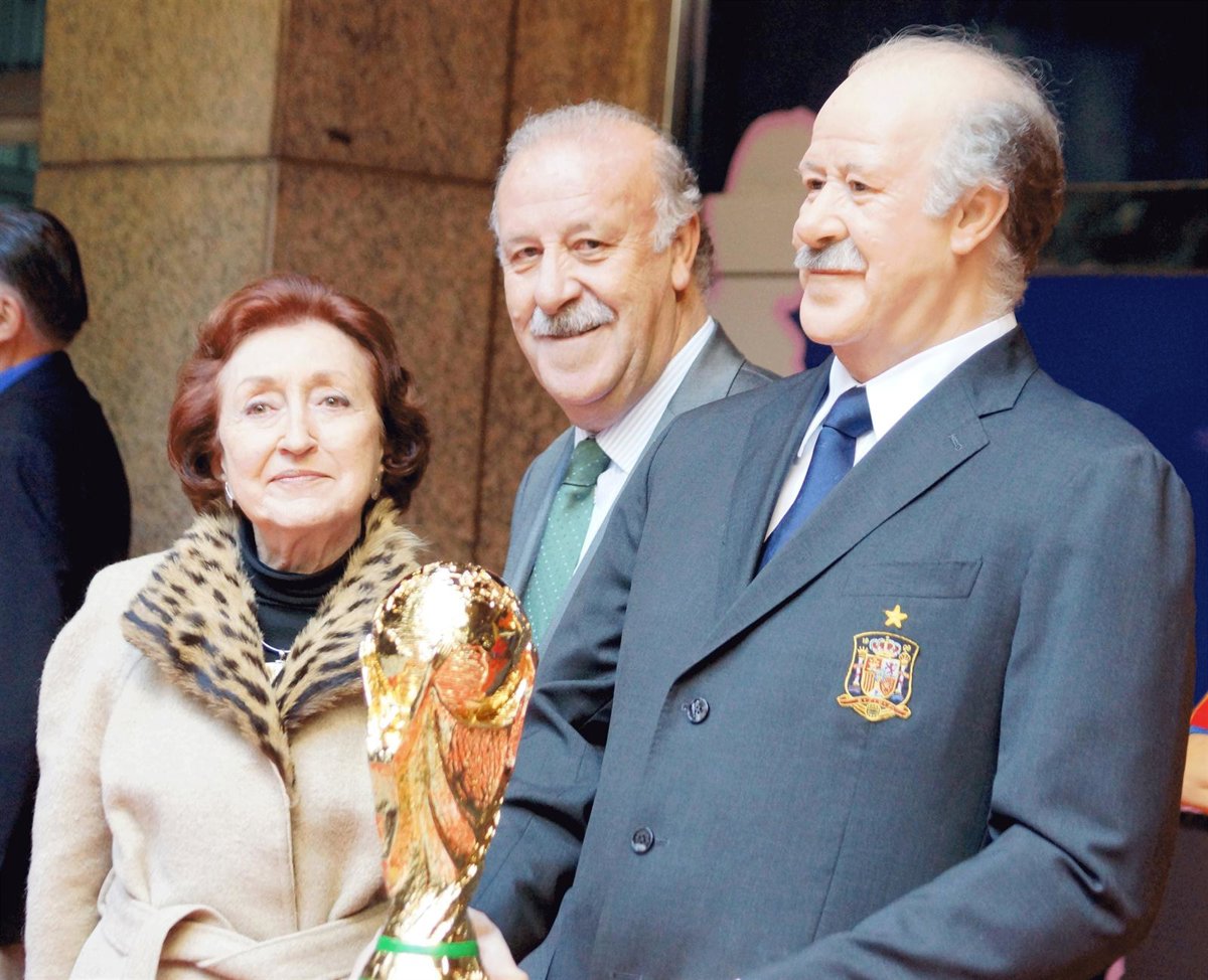 Vicente Del Bosque con su estatua de Cera Aida Perez diseñadora de la estatua - EUROPA PRESS
