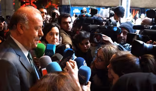 "La eliminatoria está en el aire, el Real Madrid tiene un gran equipo que es capaz de todo, aún tiene posibilidades. Además, Cristiano está jugando muy bien, está en su mejor momento", afirmó Del Bosque tras inaugurar de su estatua en el Museo de Cera.